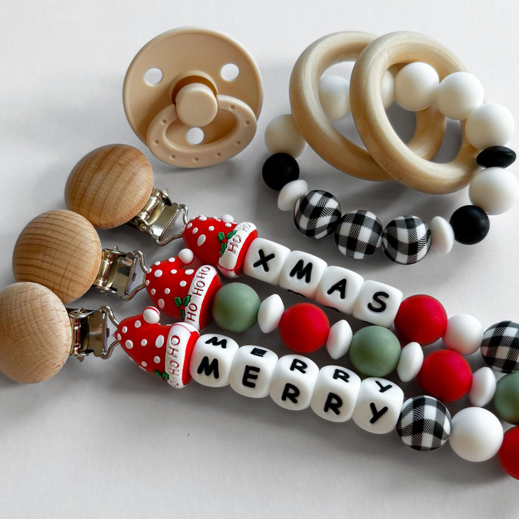 Santa Hat 'Ho Ho Ho' Christmas Pacifier Clips 🎄